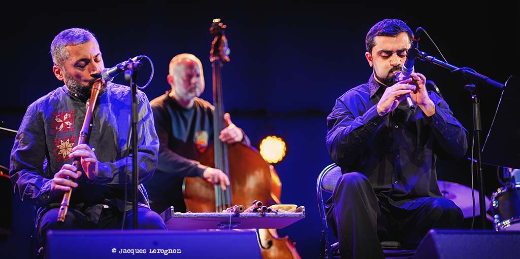 Dimanche 22, en fin d’après-midi, un concert jazz au Printemps des Arts. Le quintet du pianiste Yessaï Karapetian dans une formation originale, spécialement pour le festival. La contrebasse et la batterie sont tenues respectivement par Damien Varaillon et David Paycha. Et, au-devant de scène, deux musiciens arméniens avec leurs instruments emblématiques Norayr Gapoyan au duduk (un hautbois) et Avag Margaryan au blul (une flûte traditionnelle oblique)