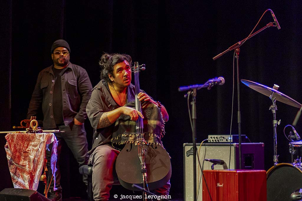 s’assoit sur un cajon et entame une mélopée alors que ces compères s’installent. Ishmael Ali au violoncelle,