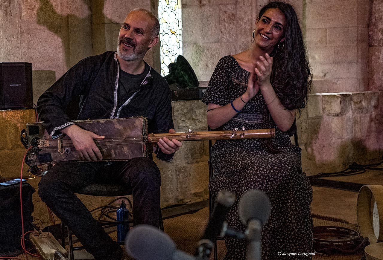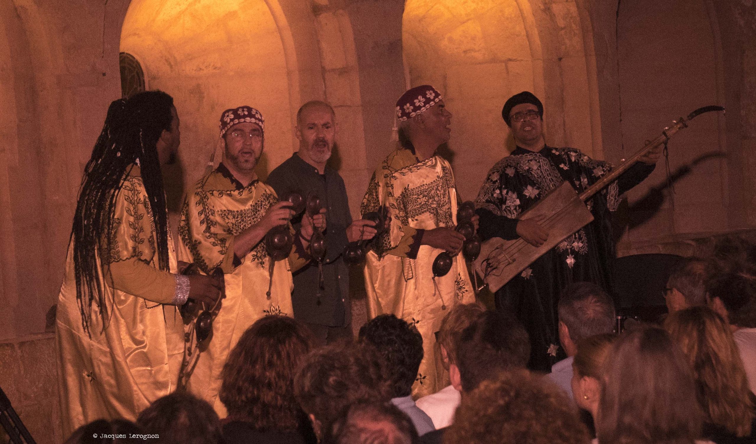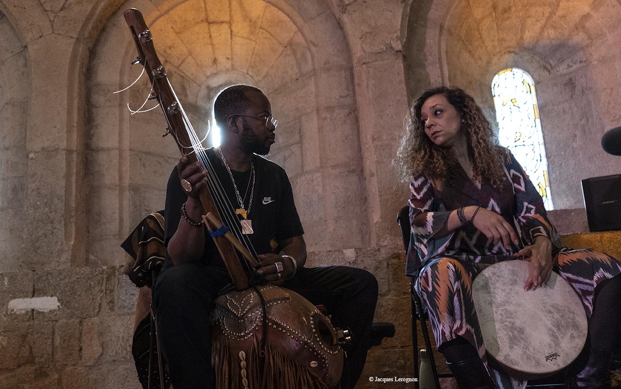 Ce sont des voix qui accueillent les spectateurs dans l’abbatiale du Thoronet. Venues du Maroc, du Mali, de l’Algérie, de Syrie ou bien de l’Italie, elles sont un préambule lourd de sens pour les déambulations qui suivent. Que ce soit dans le dortoir ou dans le cloître, les chasseurs du Mali avec la voix profonde de Adama Coulibaly mélangent leur savoir avec la tradition Arabo Andalouse magnifiquement interprétée par Mona Boutchebak, le folk venu d’Angleterre que distille savamment Piers Faccini, le directeur artistique du festival, polyglotte tant par la voix que par ses accompagnements. S’ajoutent la canzonnetta italienne et les chants traditionnels des Pouilles de Rachele Andrioli. N’oublions pas le oudiste multi-instrumentiste Malik Ziad, ses chants marocains issus de confréries mystérieuses.