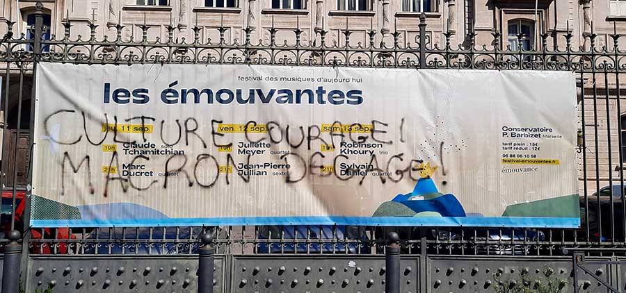 C’est le calicot du programme qui accueille l’amateur de jazz à l’entrée du conservatoire mais cette année celui-ci est orné d’un tag des plus explicite auquel on ne peut qu’adhérer.