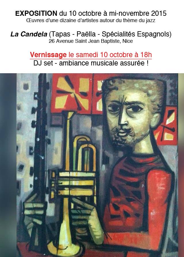 La Candela, 26 Av. St-Jean Baptiste 06300 Nice. Expo jazz du 10 Octobre à mi novembre. Vernissage le 10 Octobre 2015à 18h Facebook
